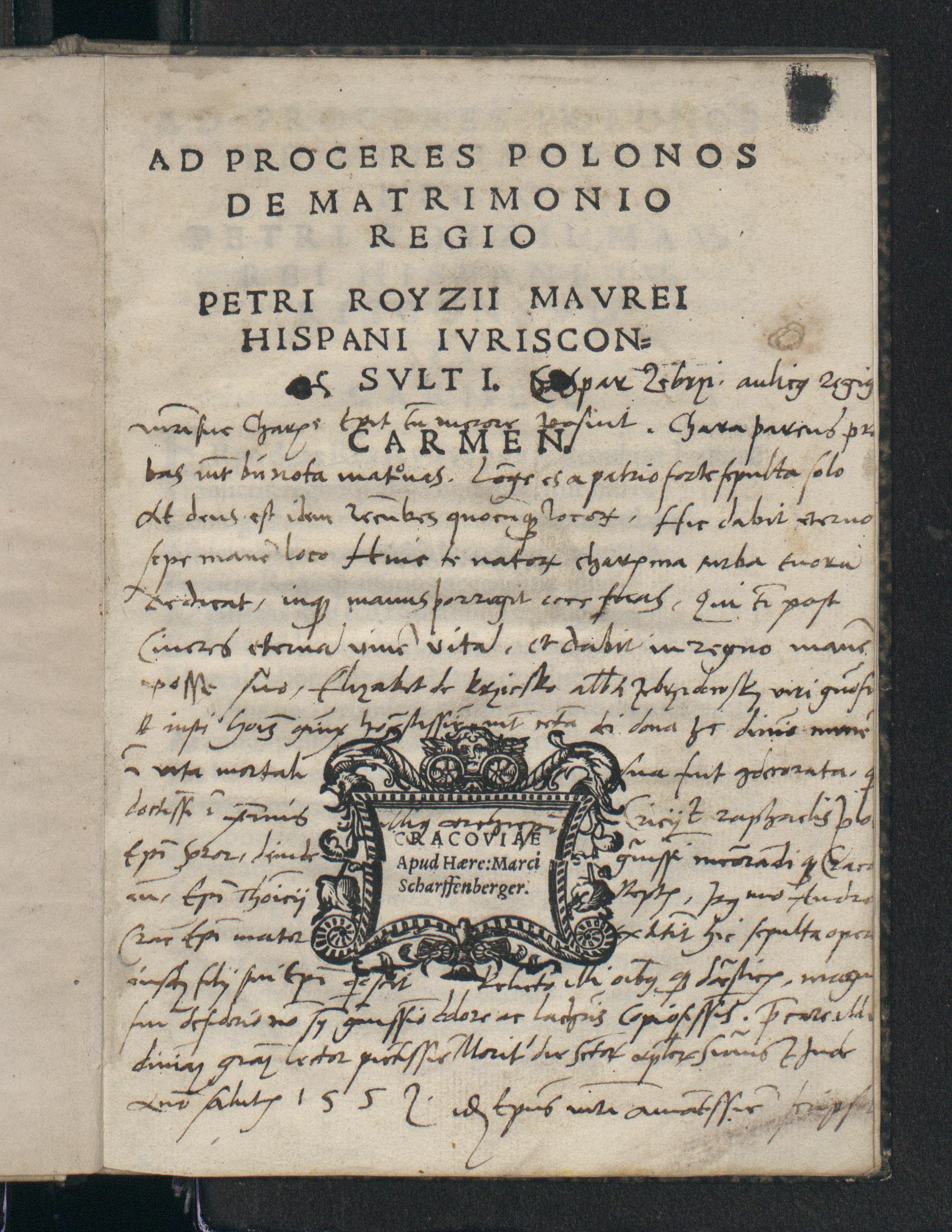Ad proceres Polonos de matrimonio regno carmen