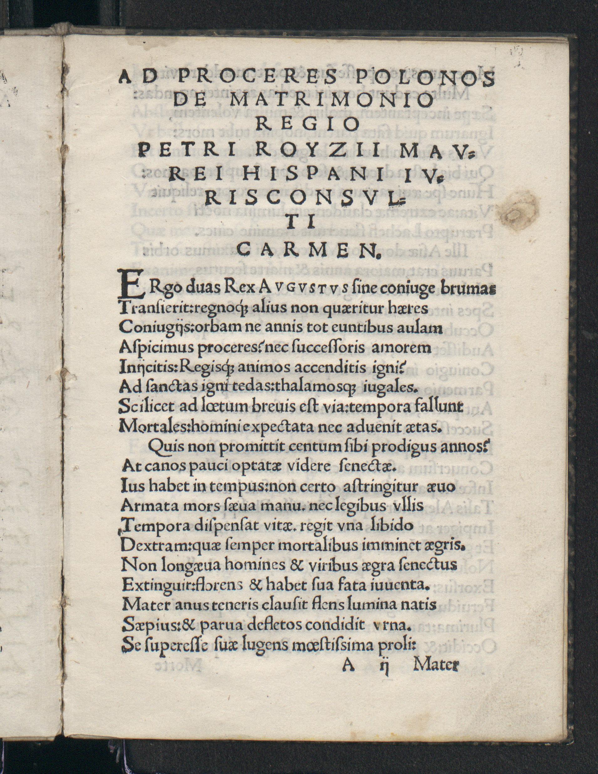 Ad proceres Polonos de matrimonio regno carmen