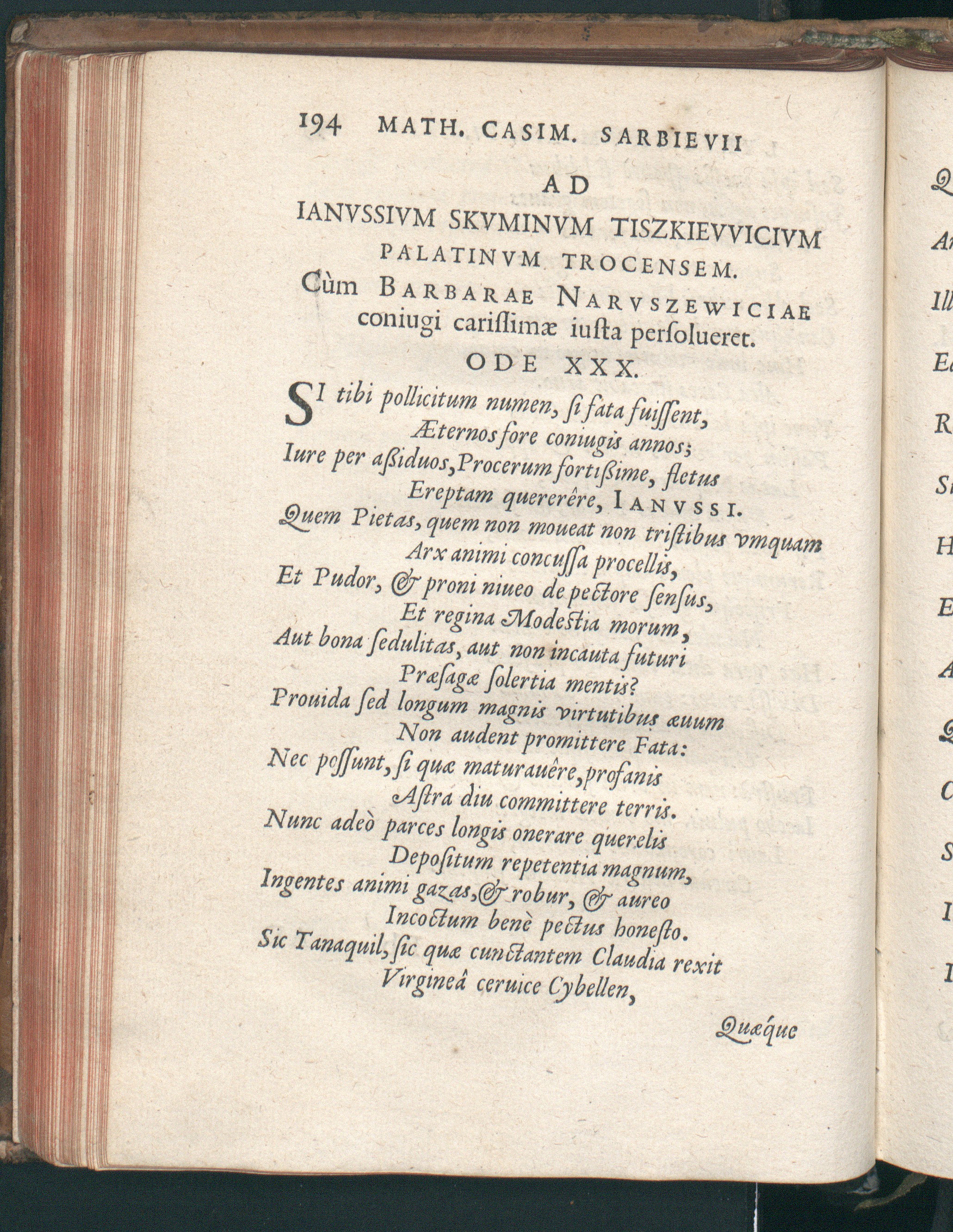 Ode XXX. Ad Ianussium Skuminum Tiszkiewicium Palatinum Trocensem. Cum Barbarae Naruszewiciae coniugi carissimae iusta persolveret